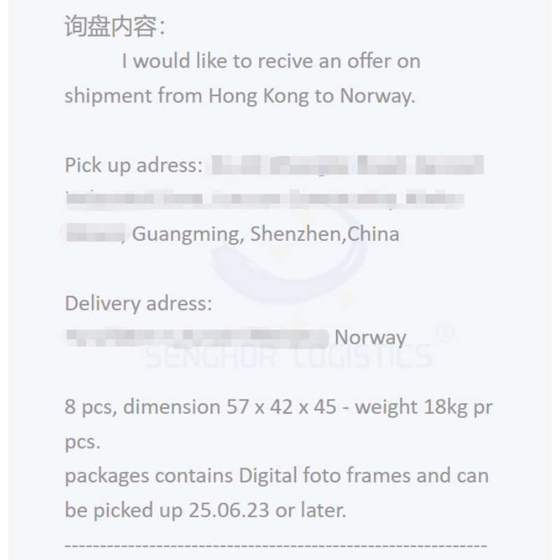 When you choose Senghor Logistics for your international air cargo from China to Norway shipping needs, you can expect the following: